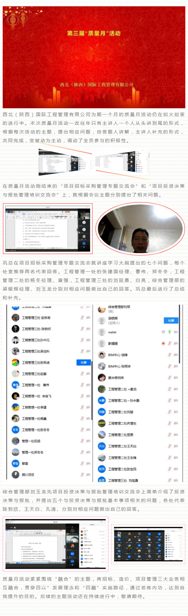 西北(陜西)國際工程管理有限公司質(zhì)量月活動(dòng)持續(xù)進(jìn)行中