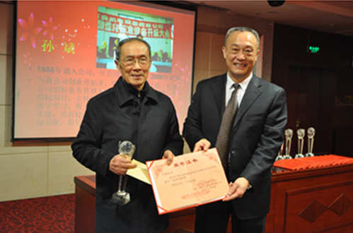 慶祝大會首先對公司創(chuàng)業(yè)及發(fā)展做出貢獻(xiàn)的離退休人員予以表彰。分別授予“孫斌、陳兆勤、張凡、田一衡、陳慧琴、白虹”等六位同志“創(chuàng)業(yè)貢獻(xiàn)獎”,授予“呂應(yīng)鵬、劉思民、周宏泰、陳文英、李敦虎”等五位同志“突出貢獻(xiàn)獎”,授予“劉啊莉、黃振昌、夏欽武、楊鴻章、張惠珍”等十二位同志“終身奉獻(xiàn)獎”,以表彰他們?yōu)槲覈型稑?biāo)事業(yè)的創(chuàng)建公司的發(fā)展付出的艱辛努力和做出的巨大貢獻(xiàn)。