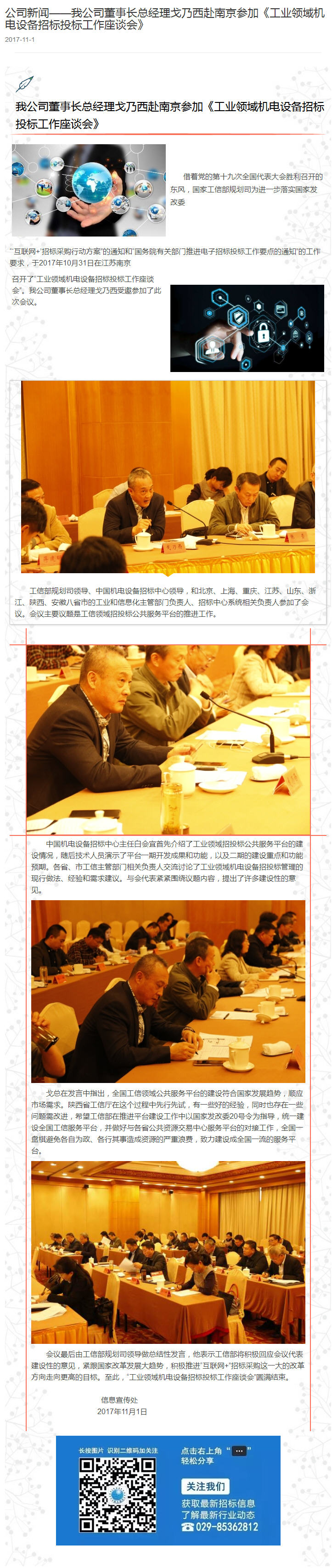 我公司董事長(zhǎng)總經(jīng)理戈乃西赴南京參加《工業(yè)領(lǐng)域機(jī)電設(shè)備招標(biāo)投標(biāo)工作座談會(huì)》