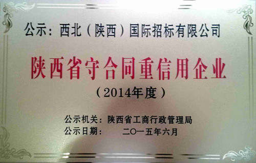 祝賀我公司榮獲2014年度陜西省“守合同重信用”企業(yè)。根據(jù)國(guó)家工商總局和陜西省工商行政管理局通知文件要求,公司申報(bào)并通過審核,現(xiàn)已在陜西日?qǐng)?bào)和陜西省工商行政管理局網(wǎng)站向社會(huì)公示。