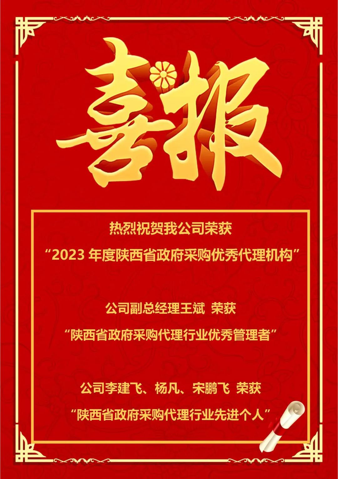 熱烈祝賀我公司榮獲 “2023年度陜西省政府采購優(yōu)秀代理機(jī)構(gòu)”