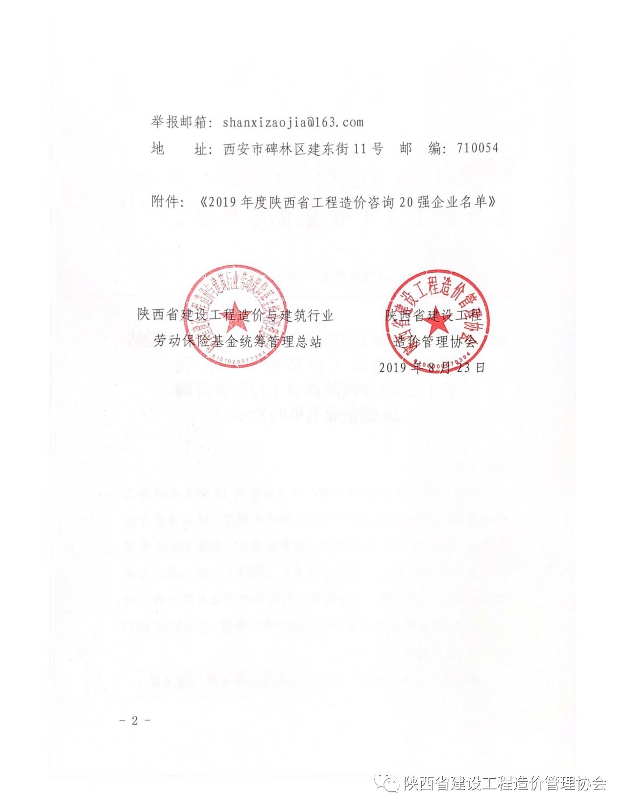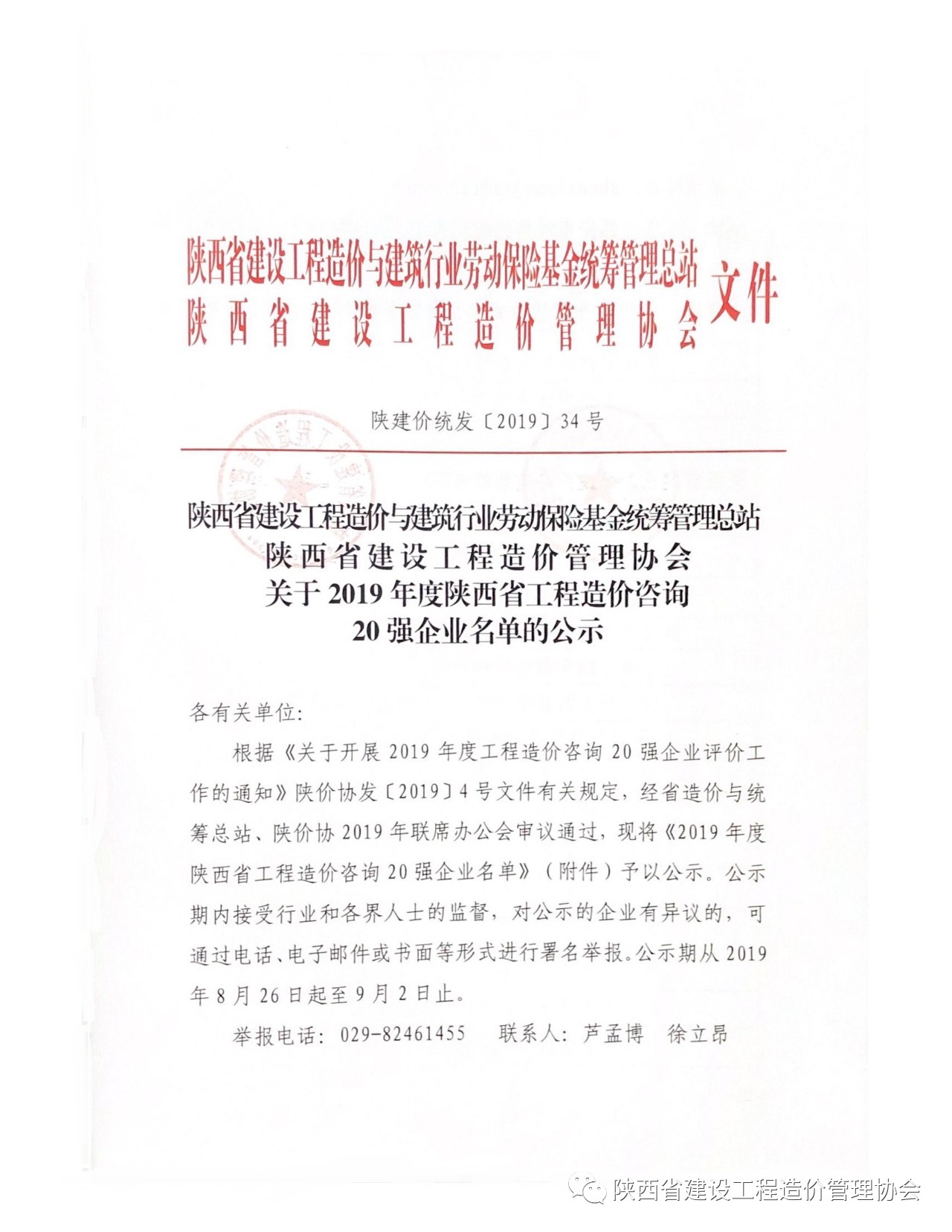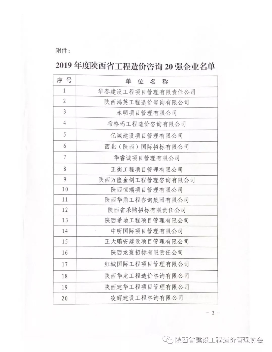 2019年8月26日,陜西省建設(shè)工程造價管理協(xié)會(簡稱陜價協(xié))發(fā)布“關(guān)于2019年度陜西省工程造價咨詢20強企業(yè)名單”公示,西北(陜西)國際招標有限公司再次入圍,榮獲“第六名”。