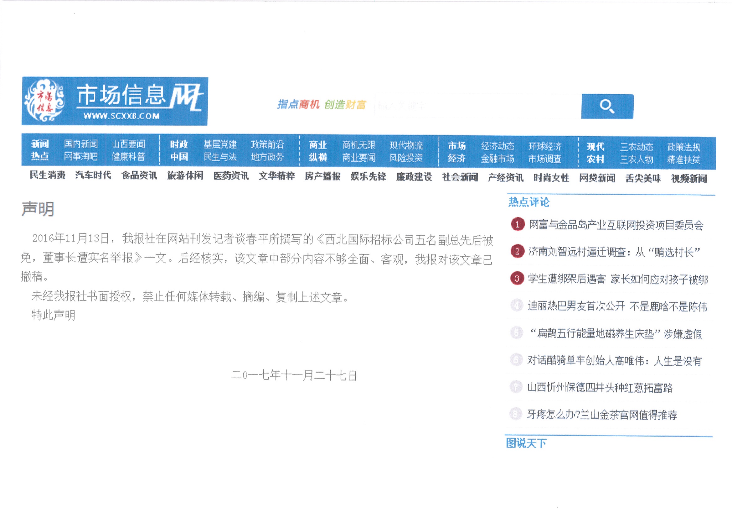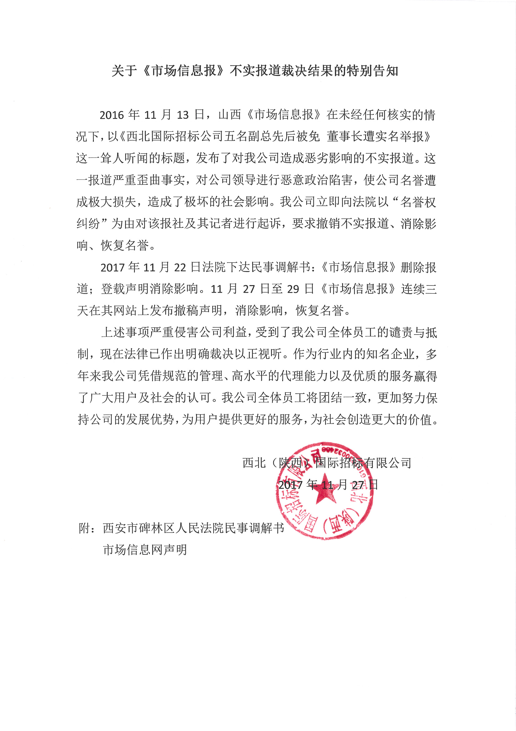 關(guān)于《市場信息報》不實(shí)報道裁決結(jié)果的特別告知