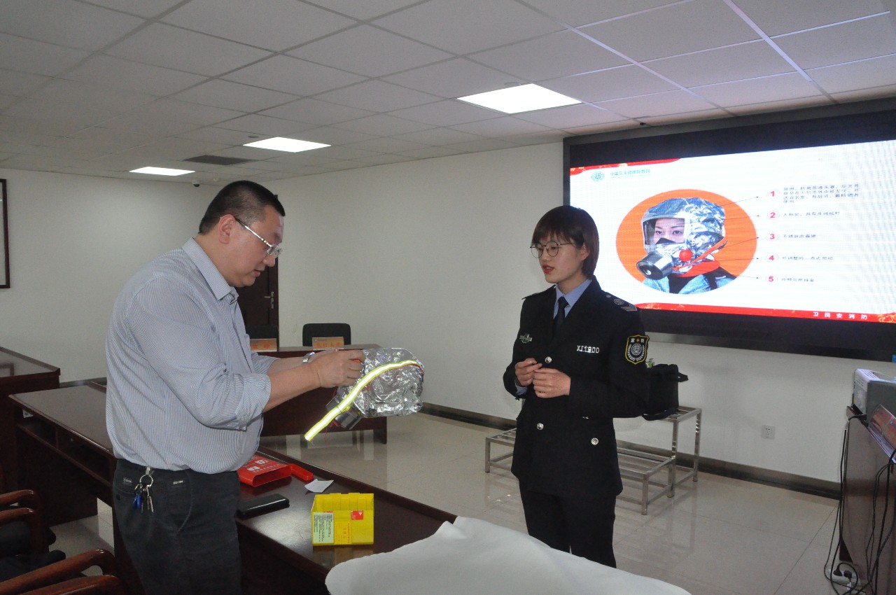 教官以新聞報(bào)道、現(xiàn)場說法的方式,播放講解了近年發(fā)生的多起重大火災(zāi)事故的實(shí)例視頻,用觸目驚心的畫面使全體參訓(xùn)人員深刻認(rèn)識到了“防范勝于救災(zāi)”的重要性。在火災(zāi)來臨時(shí),如何臨危不亂,正確自救。教官又和現(xiàn)場培訓(xùn)人員互動(dòng),如何正確使用防火毯、防毒面罩、滅火器以及強(qiáng)光手電,詳細(xì)講解了在發(fā)生火災(zāi)后的自防、自救、逃生技能。
