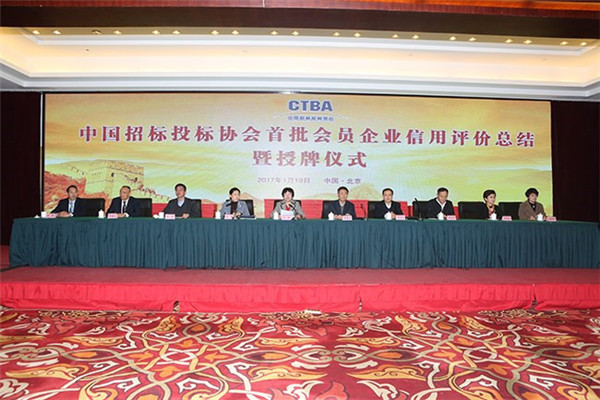 2017年1月19日,中國招標(biāo)投標(biāo)協(xié)會首批會員企業(yè)信用評價總結(jié)暨授牌儀式在京舉行。國家發(fā)展改革委法規(guī)司、財政金融司、人事司有關(guān)負(fù)責(zé)同志應(yīng)邀出席會議。會議由中國招標(biāo)投標(biāo)協(xié)會會長任瓏主持。中招協(xié)副會長李小林、袁炳玉、石國虎、顧凌波、吳強(qiáng)、劉淑珍出席會議。獲得首批招標(biāo)代理機(jī)構(gòu)信用級別的350余家企業(yè)代表參加會議。