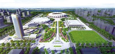 五月的西安港,天朗氣清。主體育場橡膠跑道加緊鋪設(shè),游泳跳水館的菱形柱吊裝正緊鑼密鼓進行,體育館正進行裝修收尾,奧體中心中央廣場石材已鋪裝完成。