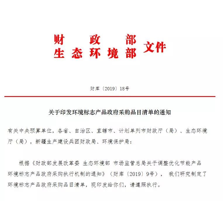 關(guān)于印發(fā)環(huán)境標(biāo)志產(chǎn)品政府采購(gòu)品目清單的通知
