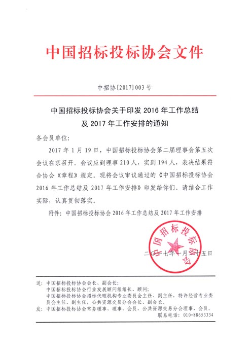 中國(guó)招標(biāo)投標(biāo)協(xié)會(huì)2016年工作總結(jié)及2017年工作安排